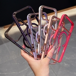 مع حامل لينة تبو الكمبيوتر الصلب واقية واضحة المحمول مع غطاء مغناطيسي لفون 17 برو ماكس